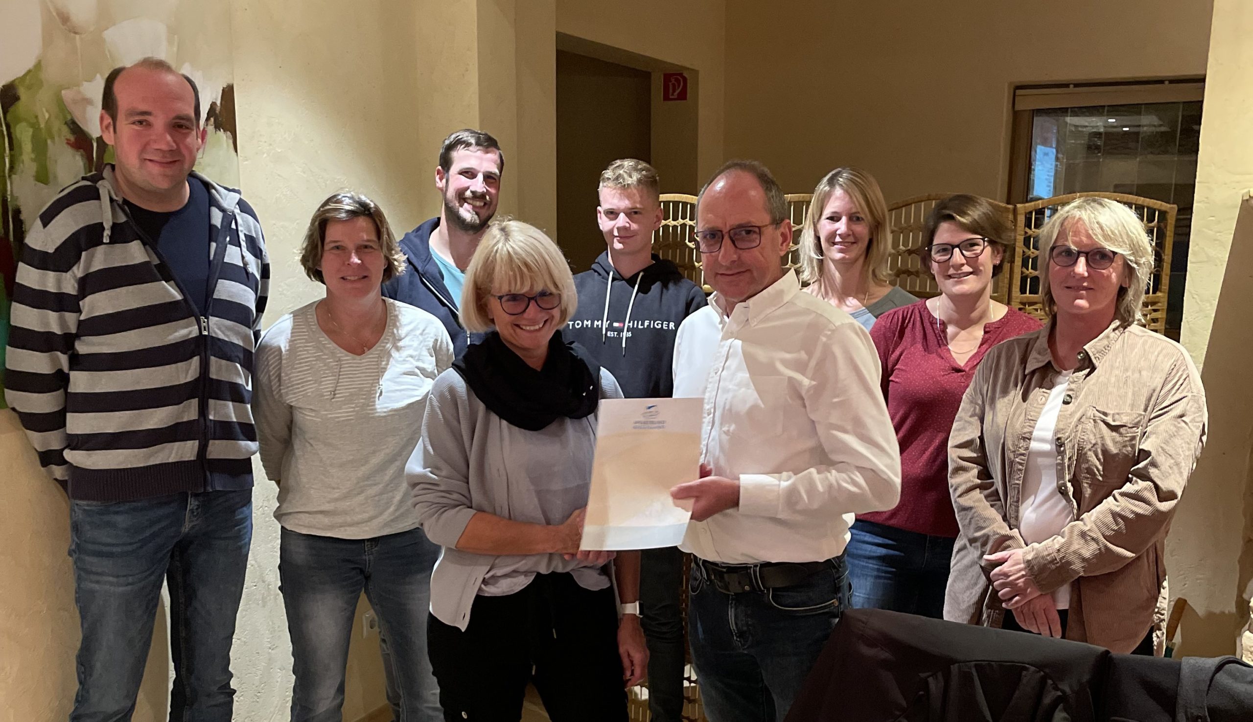 Eine ganz besondere Ehrung konnte Christine Schlosser selbst entgegennehmen. In Abwesenheit des Sportkreisvorsitzenden hat Geschäftsführer (und Ehegatte) Michael Schlosser ihr „in Würdigung besonderer Verdienste um die Förderung des Sports“ die silberne Ehrennadel des Sportbund Rheinland e.V. verliehen. Damit zeichnet der Sportbund Christine Schlossers über 25-jähriges Engagement als Übungsleiterin, ehemalige Sport- und Jugendwartin und aktive Vorsitzende für den Daadener Turnverein aus.